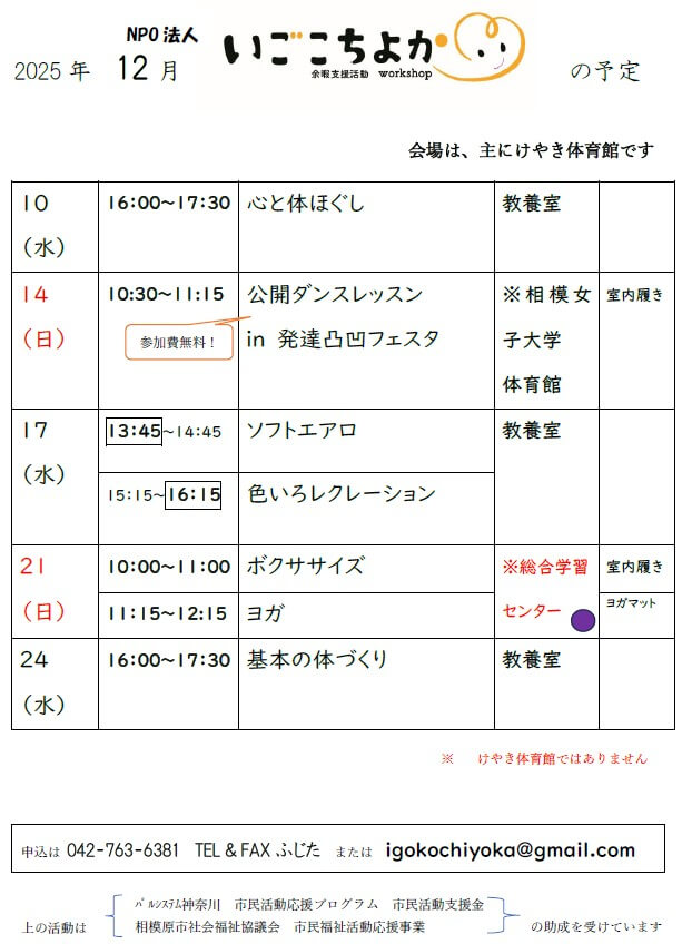 11月の活動レポート・12月のお知らせ|NPO法人いごこちよか